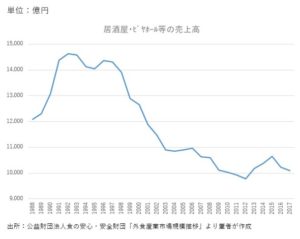 1、居酒屋業界の売上高と日本人の酒離れ