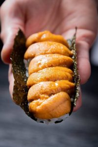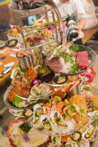 最高級のウニ「蝦夷バフンうに」を“お客様の目の前で”のりに巻いて提供するメニューや、元気な掛け声と共にお客様が「ストップ!!」というまで、“お客様の目の前で”いくらを注ぎ続ける名物メニュー「いくらごぼれご飯」など、食のエンターテイメントをテーマにしたメニューが同店には多数用意されています。実際にお店に訪れてみると、平日にも関わらず満席状態でした。そして印象的だったのは、他の居酒屋に比べ女性客や若いカップルなどが多いこと。また、スタッフの名物商品の提供パフォーマンスが始まると、多くのお客様が自分のスマホでバシバシと写真や動画を撮り始めます。その光景はまさにエンターテイメント「劇場型居酒屋」といった感じです。